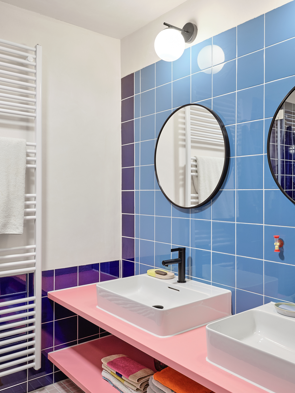Produkte aus den Kollektionen VAL und LUA tragen zur verspielten Neuinterpretation der Ästhetik der 1970er Jahre in diesem Reihenhaus bei.