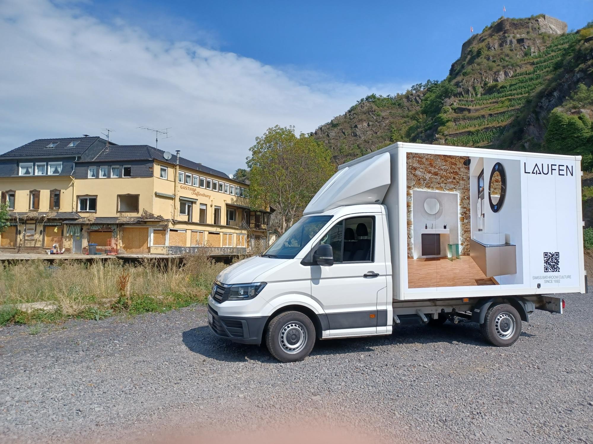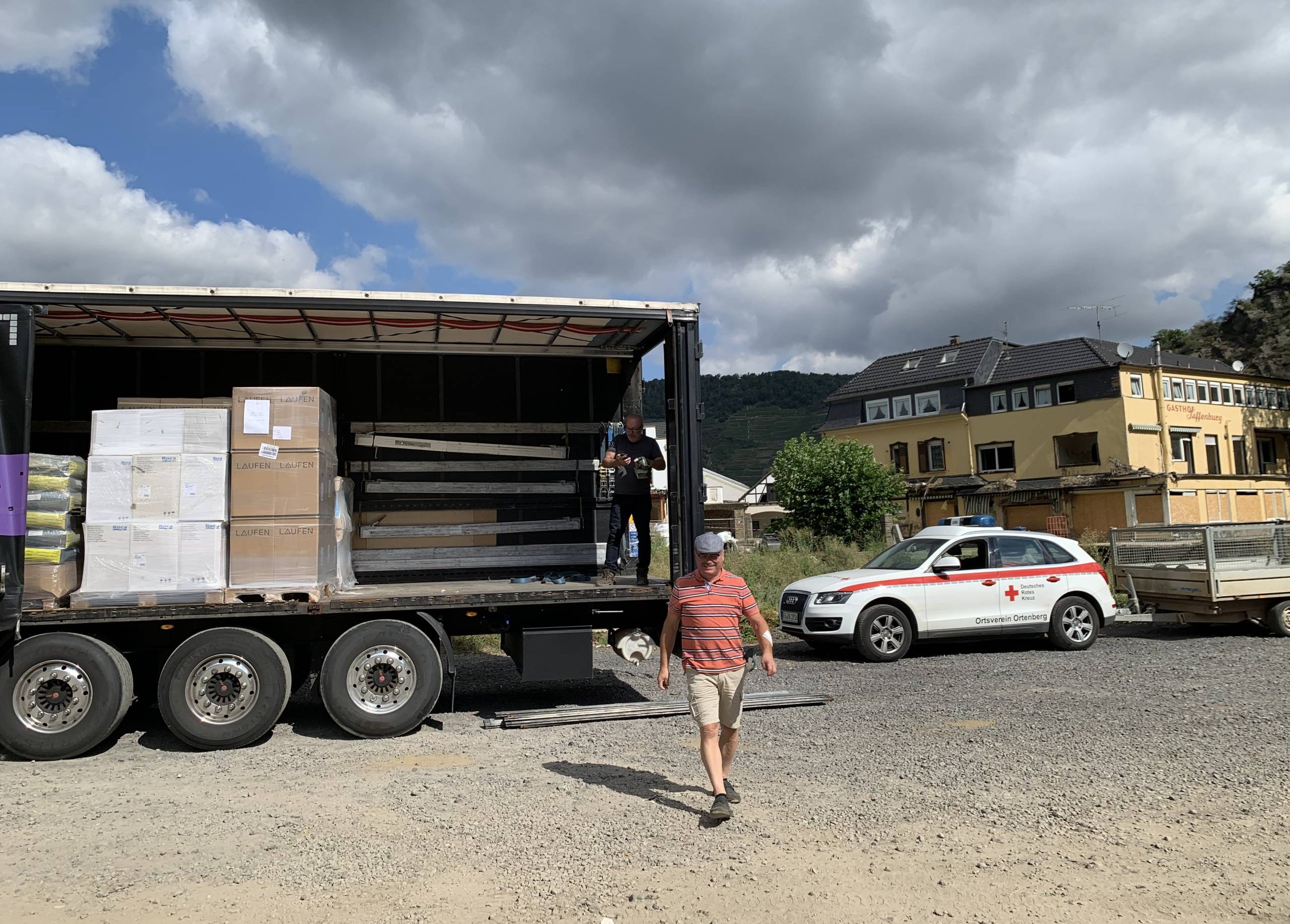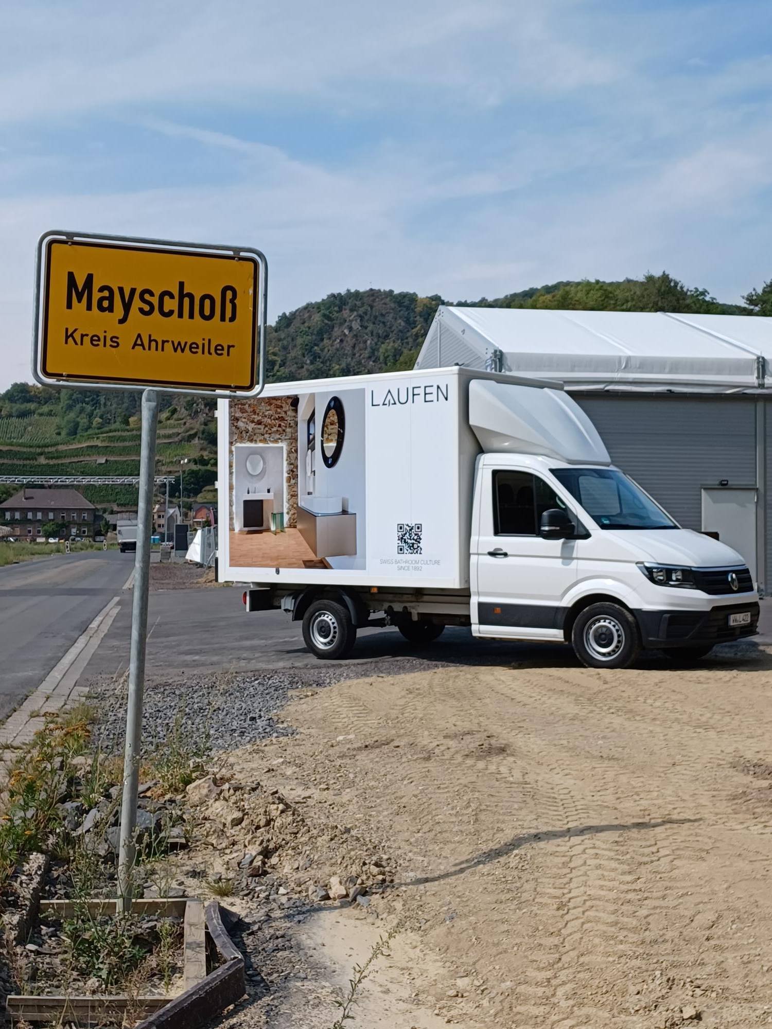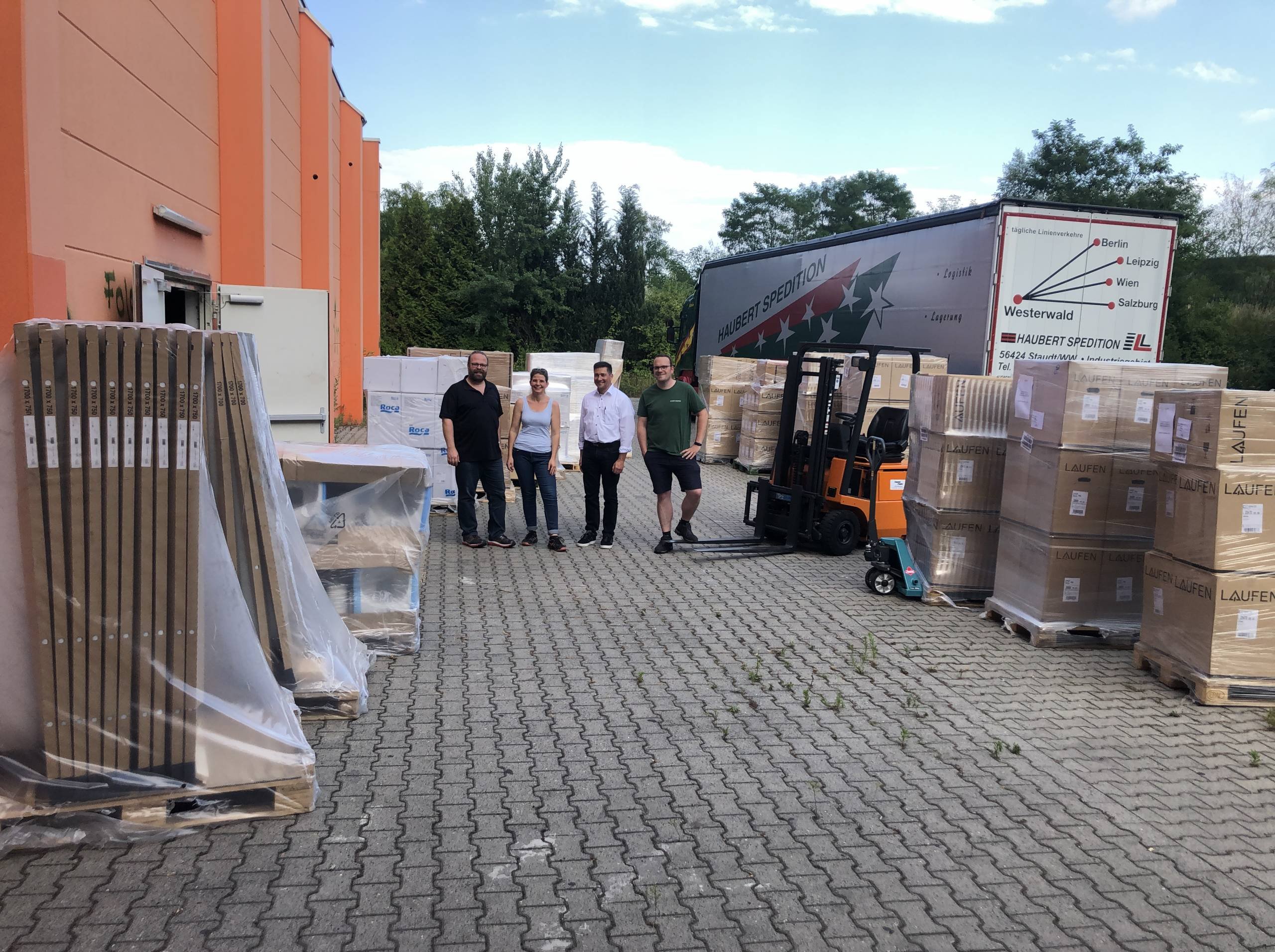 Mit den Gründern der gemeinnützigen Organisation "Aktion Rheinland-Pfalz hilft", den Eheleuten Greilich, beteiligt sich LAUFEN am Wiederaufbau des Ahrtals.