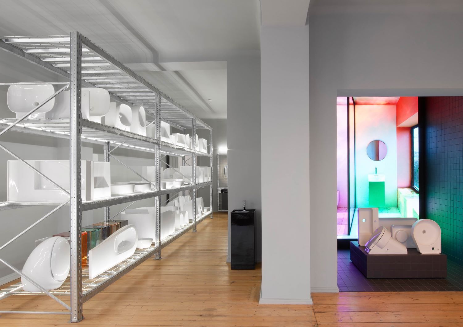 In einem einzigartigen Raum, entworfen von Konstantin Grcic, bieten wir eine Bühne für Experimente und Gespräche über Badezimmerdesign und gesellschaftliche Strömungen. Der LAUFEN space Berlin präsentiert ein umfangreiches Produktportfolio, einen LED-Wand mit Filmen und Kampagnen sowie eine Reihe von Pop-up-Installationen. Mit persönlicher Beratung zu Materialien, Farben und Nutzung unterstützen wir Sie bei der Entwicklung innovativer Lösungen und Kombinationen für das Badezimmer.