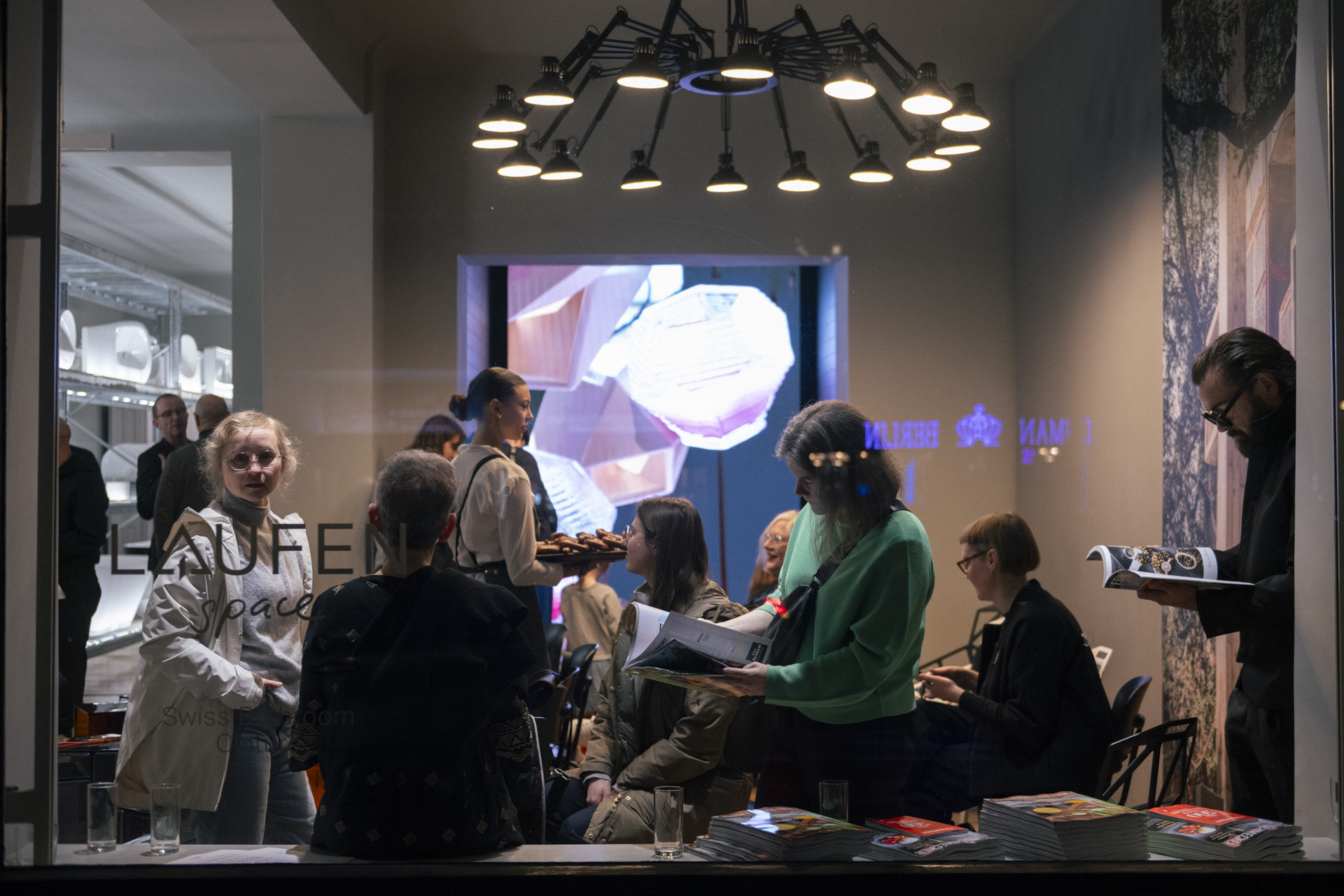 Seine Vervollkommnung fand der Abend durch die Präsentation der Skulptur FREEZE AND CLAY von MuDD Architects, die erstmalig im Rahmen der Architekturbiennale 2023 im Palazzo Bambolo in Venedig präsentiert wurde und zwei der ältesten Materialien, Keramik und Glas, in ihren Mittelpunkt rückt. Mit der Skulptur, die noch bis zum 29. März im LAUFEN space Berlin zu erleben ist, nimmt LAUFEN einmal mehr am Dialog zwischen Architektur und Kunst teil.