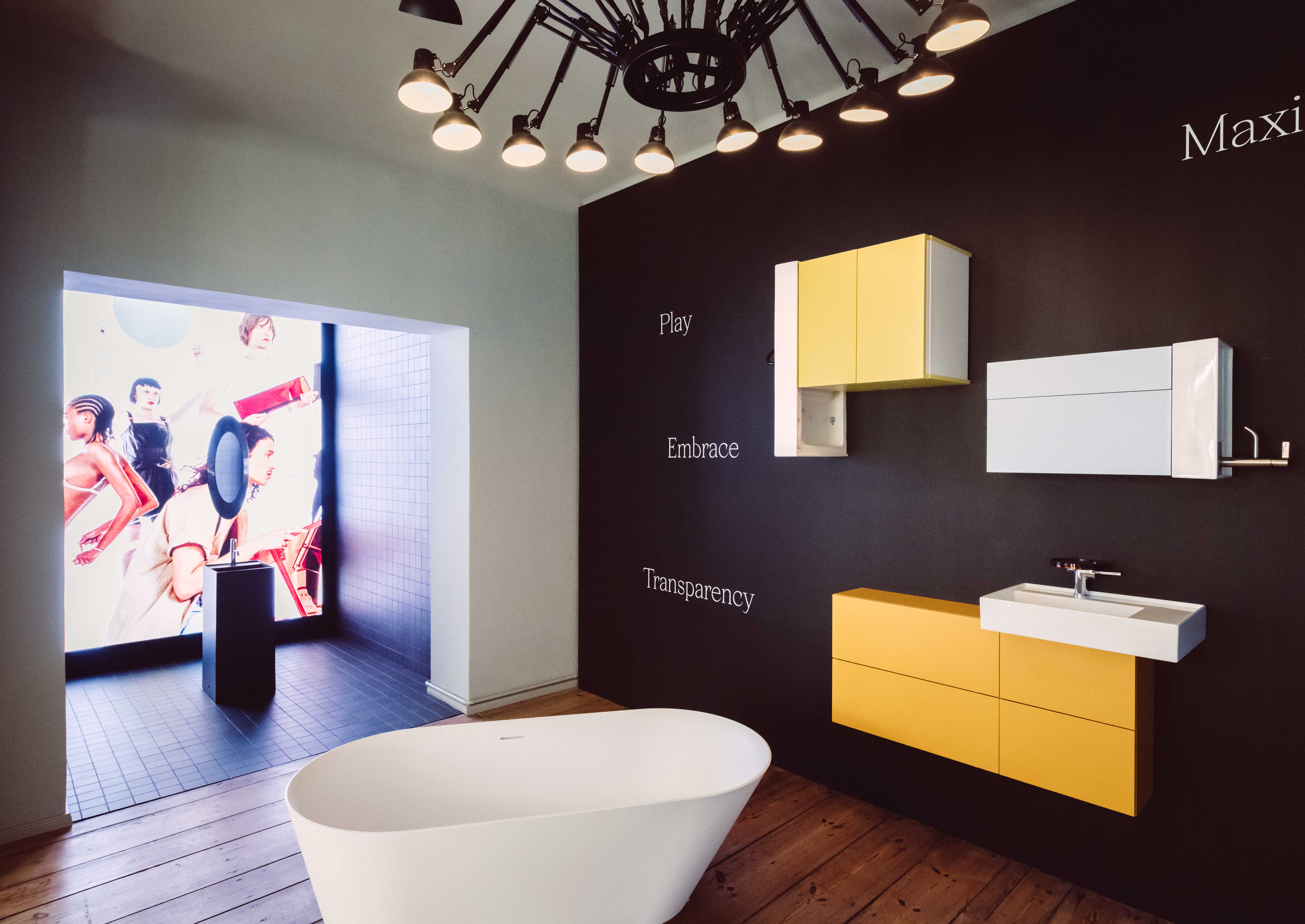 Die Installation, basierend auf der Frage: Was macht das Badezimmer des 21. Jahrhunderts aus?, hebt die vielen Möglichkeiten hervor, wie die Kartell • LAUFEN Kollektion in unseren ständig sich wandelnden Wohnräumen angewendet werden kann. Diese hochflexible Kollektion umfasst alle wesentlichen Badezimmerstücke – einschließlich Keramiken, Möbeln, Armaturen und Zubehör – die mit Stücken aus anderen Kollektionen wie LANI oder LUA, SONAR oder ILBAGNOALESSI kombiniert oder einzeln im Badezimmer verwendet werden können.